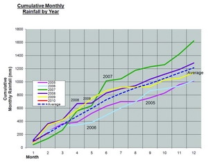 This month's total includes three falls of close to 30mm: 29.3mm on February 6, 33.6 on February 7 and 30.1mm on February 13.