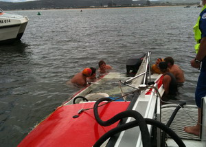 "With the assistance of two local surf club members as well as three members of the public at Lobster Beach, the ski boat was righted and pumped out using equipment from the Marine Rescue vessel.