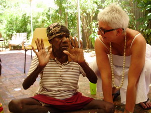 As a unique privilege, she was given a personal cultural tour and lecture by art centre trainee Rachael Umbagai and was introduced to Aboriginal artists Gordon Barunga and his partner Gabriella Dolby.