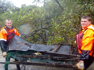 Over 200 decaying oyster trays were retrieved, which coordinator Mr Graham Johnston said "were extremely difficult to remove due to their conditions and dense mangroves surrounding their position".