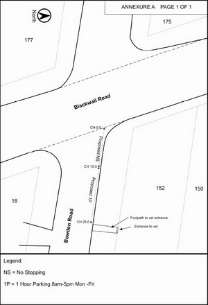 The timed parking restriction between Bowden Rd and the entrance to the Hospital would provide short term parking for customers attending the veterinary hospital with sick animals.
