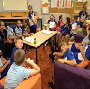 A selection of Empire Bay Public School Year 6 students had afternoon tea with principal Mr Brad Lewis recently as a thank you for being "peace keepers".