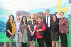 Caption: Parent Rachael Reeves, Parental and Community Engagement Program coordinator Scott Campbell, parent Jo Brannigan, student Zac South, Aunty Anita Selwyn, Brisbane Water Secondary College Umina campus principal Brent Walker, Ettalong Public School aboriginal community support worker Tania Whiting and Koorana AECG member Kenndell Smith.