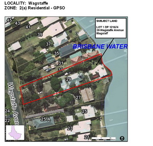 The site is bounded by Brisbane Water along the eastern boundary, while adjoining and surrounding allotments to the north, west and south contain single and double storey dwellings.