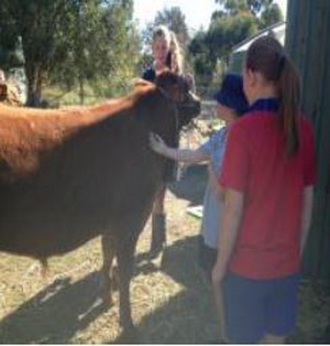 Students learnt about handling chickens and day-old piglets, how to round up sheep and feed goats and cattle.