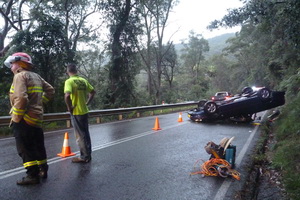 Police are taking action against a 27-year-old man for negligent driving after his car overturned on Woy Woy Rd at Horsfield Bay on Tuesday, September 17.