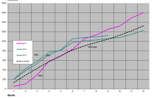 Rainfall this year has followed a similar pattern to last year, when a wet start to the year was followed by six months where rainfall was well below average.
