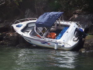 An aluminium boat, still in good condition, was washed up on some rocks suspected from the previous day's windy conditions.