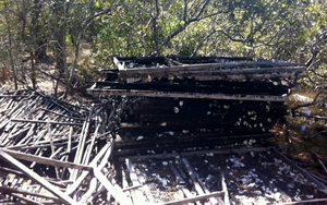 Inspection of the man-made track through the mangroves found approximately 40 tyres lying beneath tidal water which were used to keep feet from getting wet, but restricting growth of local mangroves.