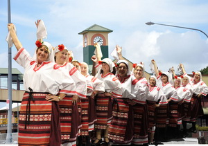 A group of Macedonian Dancing Girls brought traffic to a halt in the middle of Woy Woy on Wednesday, October 23, as part of a publicity stunt for Woy Woy Little Theatre's production of Competitive Tenderness.
