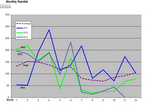 The cumulative total for rainfall this year stands at 1,164.1mm which is below the average figure for this time of year of 1,324.4mm.